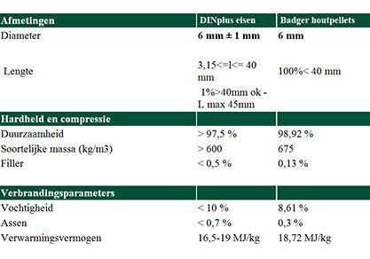 De pellets voldoen standaard aan de strengste Europese kwaliteitsnormen en. De pellets zijn van zeer goede kwaliteit en opgebouwd uit 100% naaldhout, zie bovenstaande analyse.